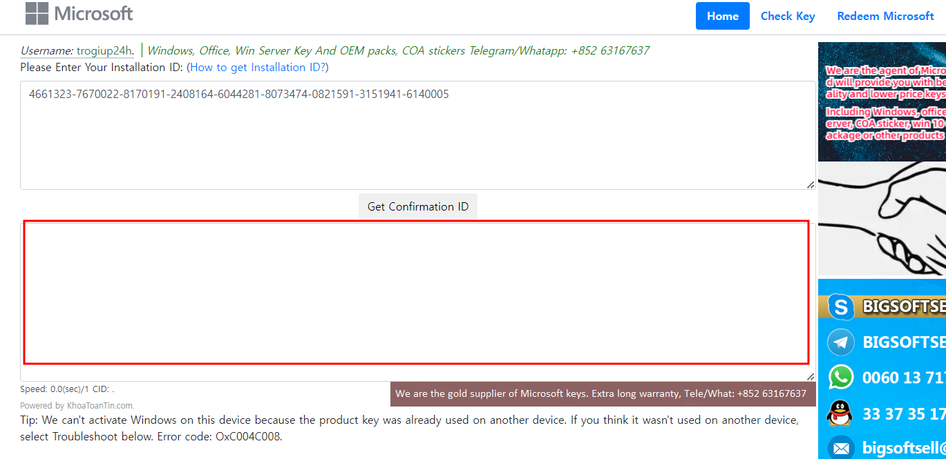 Get Confirmation ID를 클릭하면 빨간색 박스에 Confirmation 아이디가 나옵니다