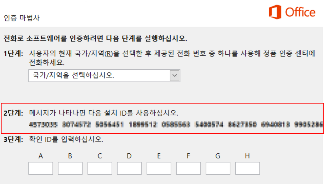 3. 화면에 보이는 63개 숫자(설치아이디)를 메모장에 적어놓습니다.