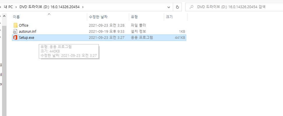 Setup.exe를 눌러 Office 2021 pro plus를 설치하시기 바랍니다.
